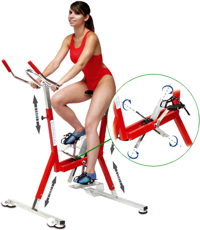 I muscoli sollecitati :L'aquabike fa lavorare simultaneamente diverse parti del vostro corpo: • Cintura addominale • Fascia toracico-lombare • Glutei • Gambe • Polpacci • Braccia | ![]() |